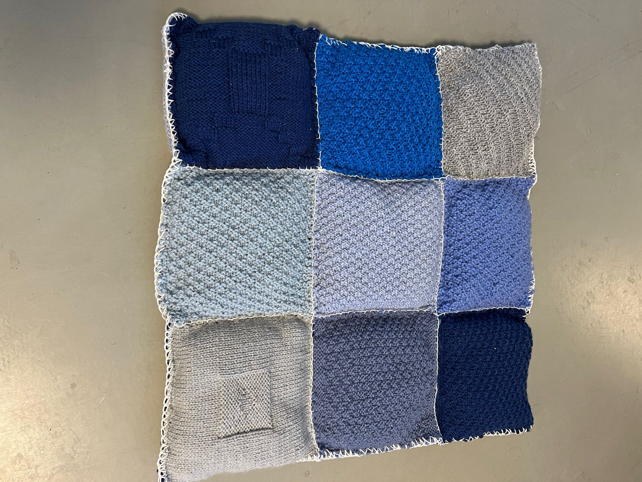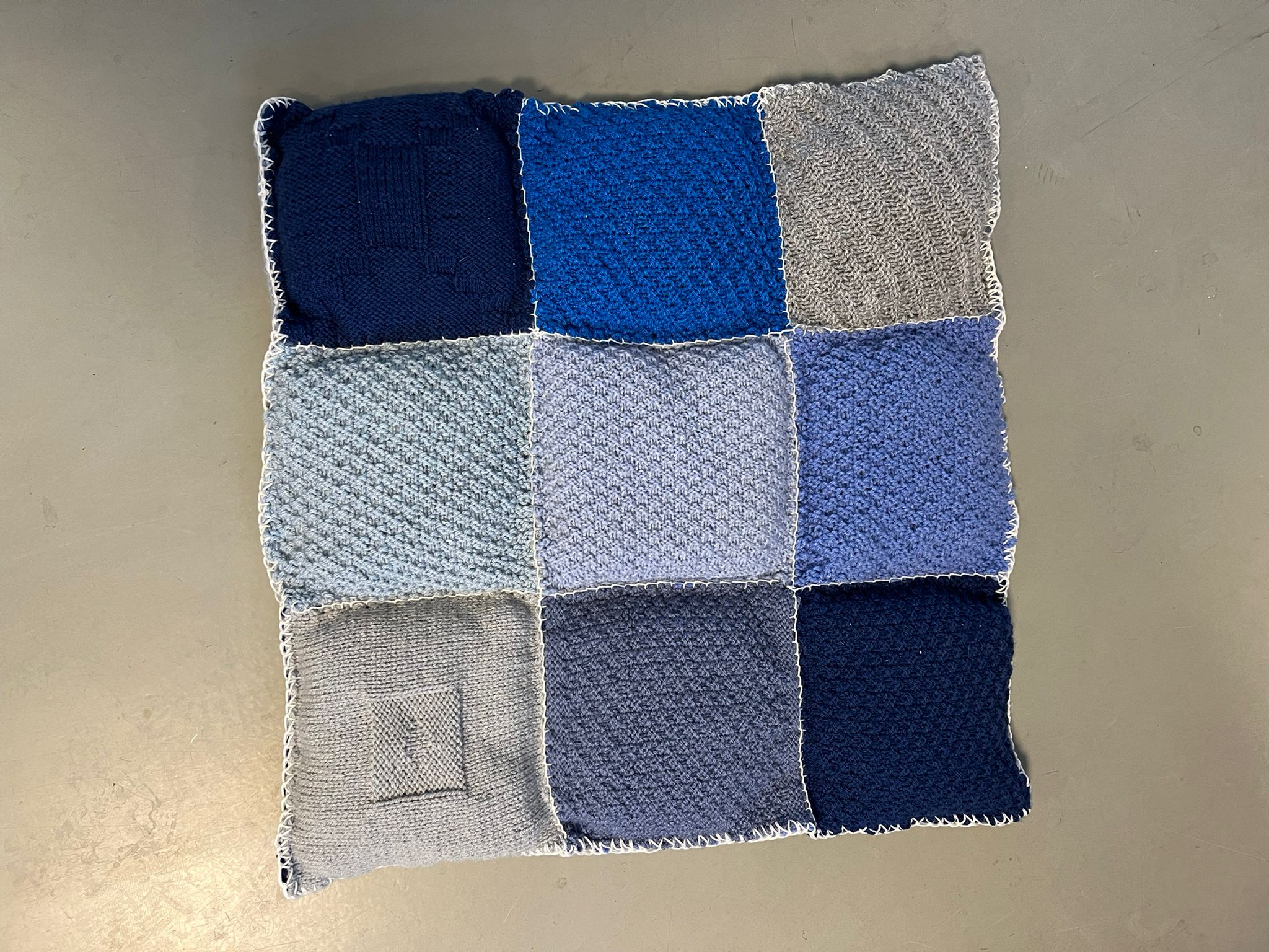 Zelf gehaakt kussen waar een hond op kan liggen.